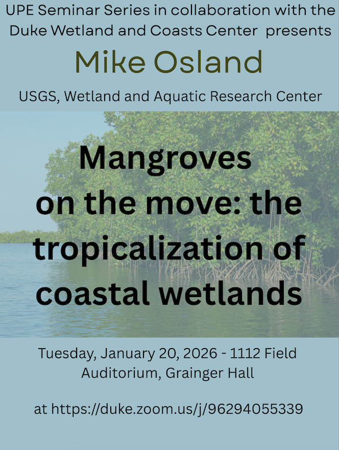 The goal of the Duke University Wetland and Coasts Center (DWCC) is to provide sound scientific knowledge that will lead to sustainable wetland functions and services locally, nationally, and globally.